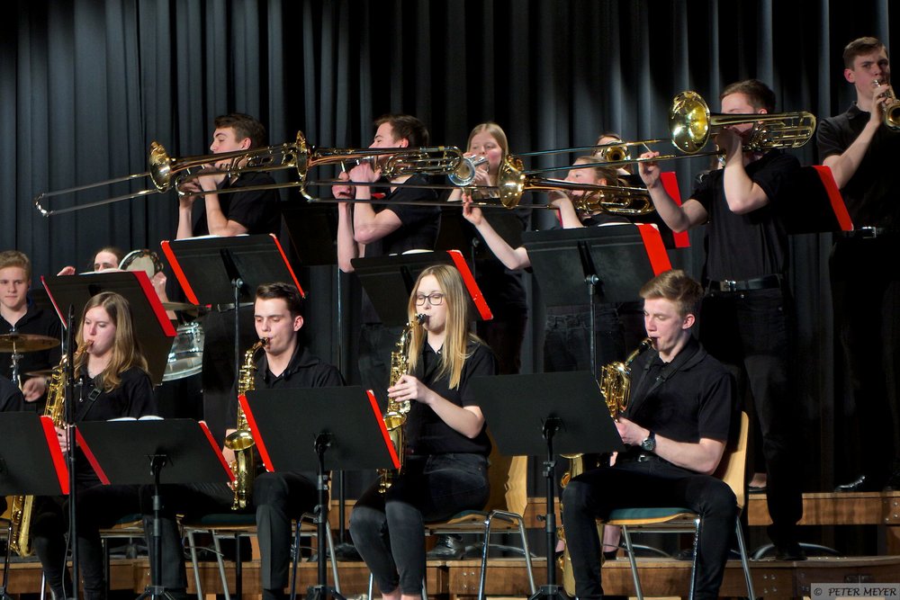 Nach der Pause zeigten die Big Bands mit Sambeando und Sing, Sing, Sing das sie sowohl Samba als auch Swing eindrucksvoll spielen können. Den krönenden Abschluss des Konzertes blieb der Big Band Stadthagen Body & Soul mit Stücken von Russel Ferrante (Nimbus), Michael Bublé (Everything) und Quincy Jones (Quintessence) vorbehalten. Schulleiterin Angelika Hasemann bedankte sich beim musikalischen Leiter des Konzertes Andreas Meyer mit einem großen Blumenstrauß.
